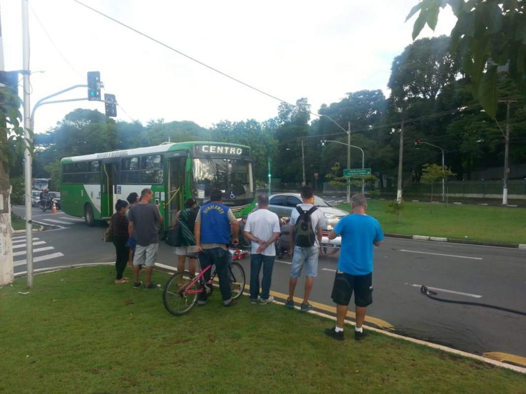 O relato também foi feito por uma passageira do ônibus. Segundo ela, todas as pessoas no veículo chegaram a cair por causa da batida. A condutora do coletivo não quis falar com a reportagem, mas ficou no local e foi ouvida por policiais militares que atenderam a ocorrência.