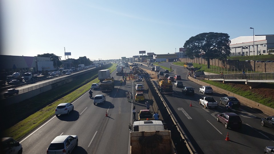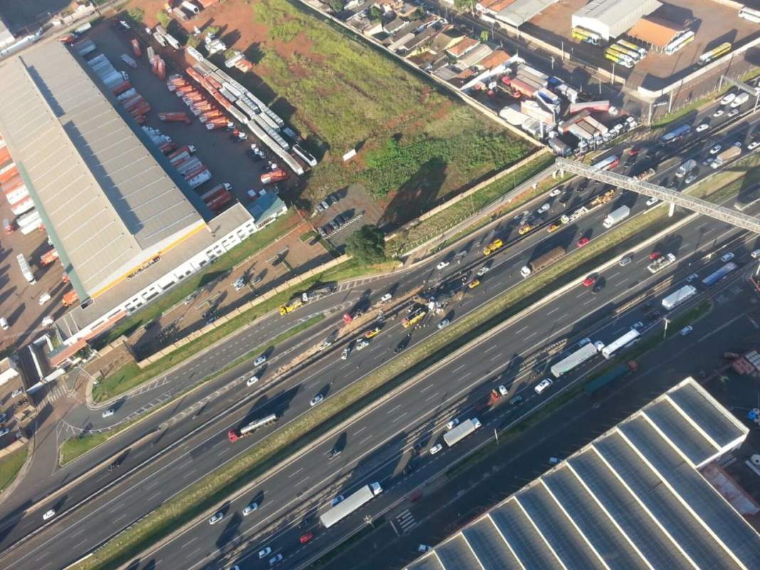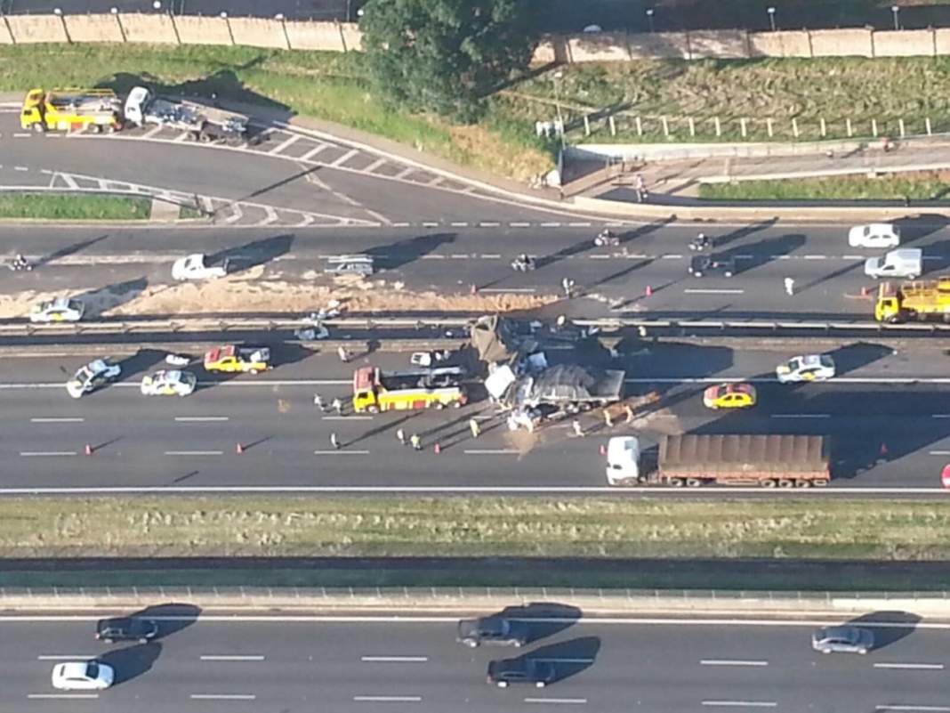 Um dos caminhões chegou a ficar atravessado na pista, com interdições de faixas na pista expressa e marginal. A equipe de socorro da rodovia espalhou serragem na pista para evitar que o combustível dos veículos pegue fogo.