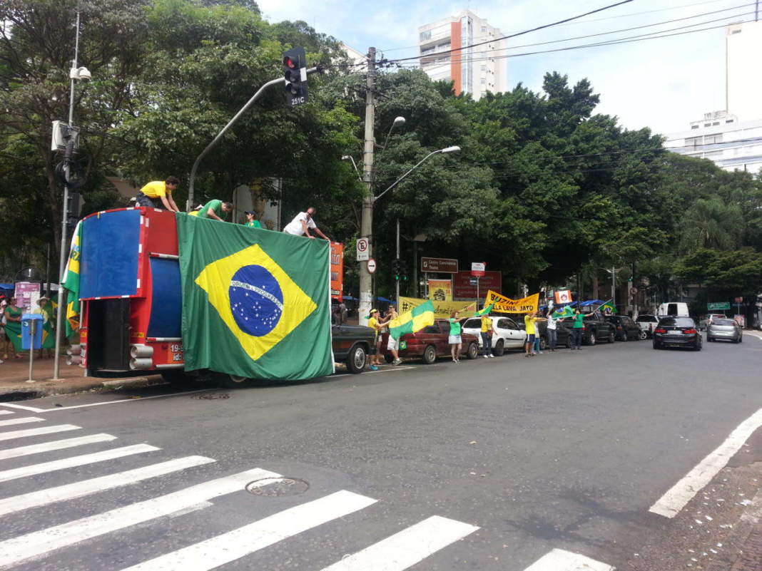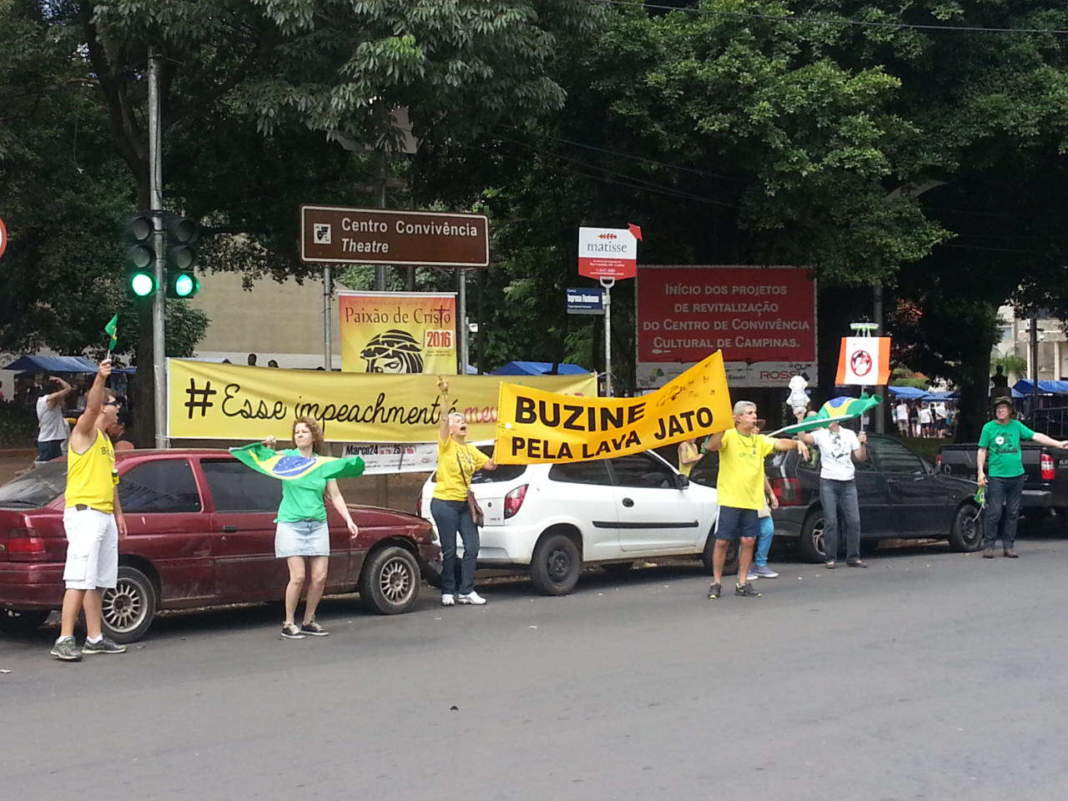 Moradores de Campinas realizaram mais um protesto contra o Governo Federal e pedindo a renúncia da Presidente da República, Dilma Roussef, na manhã desse domingo. O ato aconteceu no Centro de Convivência Cultural.