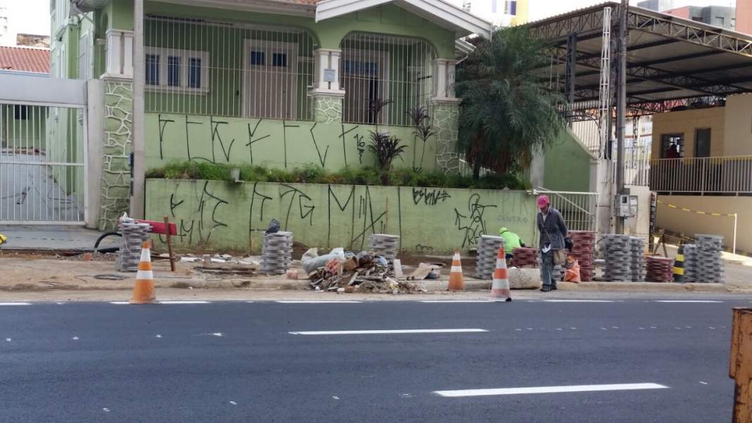 São dois quarteirões com interdições, desvios, buracos e materiais empilhados e muita movimentação de máquinas e também trabalhadores. Inicialmente prevista para o dia 30 de abril, a conclusão mudou para o próximo sábado e o florista Rubens Azarias reclama dos transtornos.
