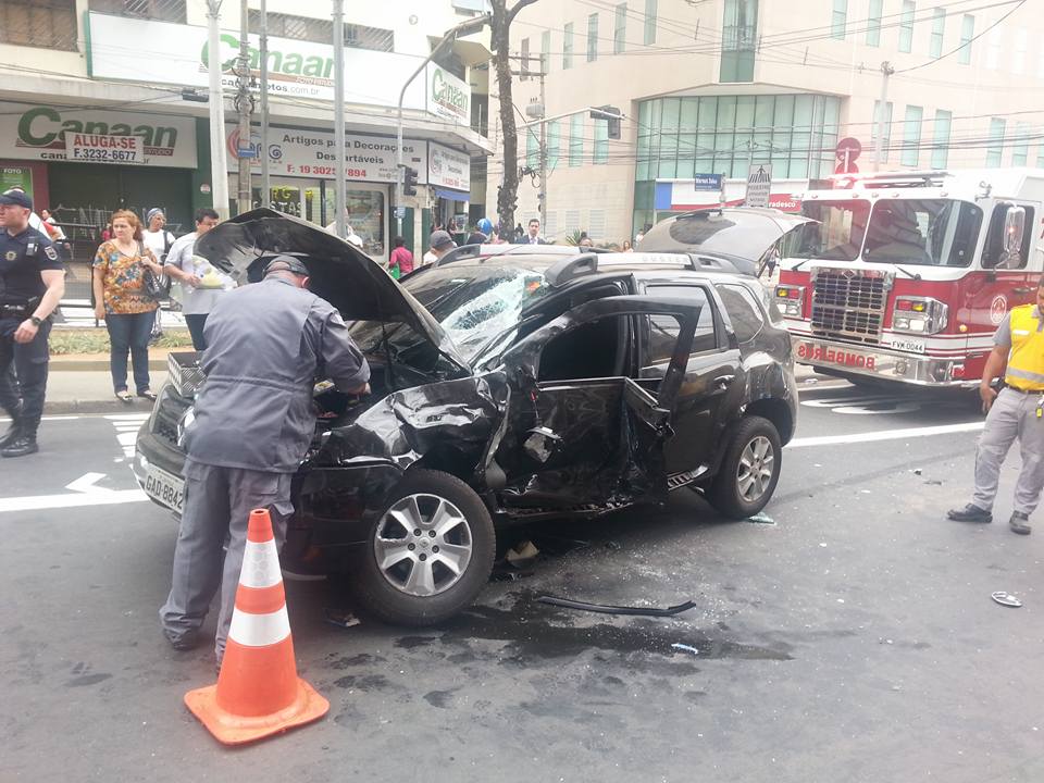 Um acidente entre um automóvel e um ônibus articulado deixou uma mulher ferida, presa nas ferragens, na tarde desta terça feira, no cruzamento da Avenida Moraes Salles com a Rua Barão de Jaguara, Campinas.