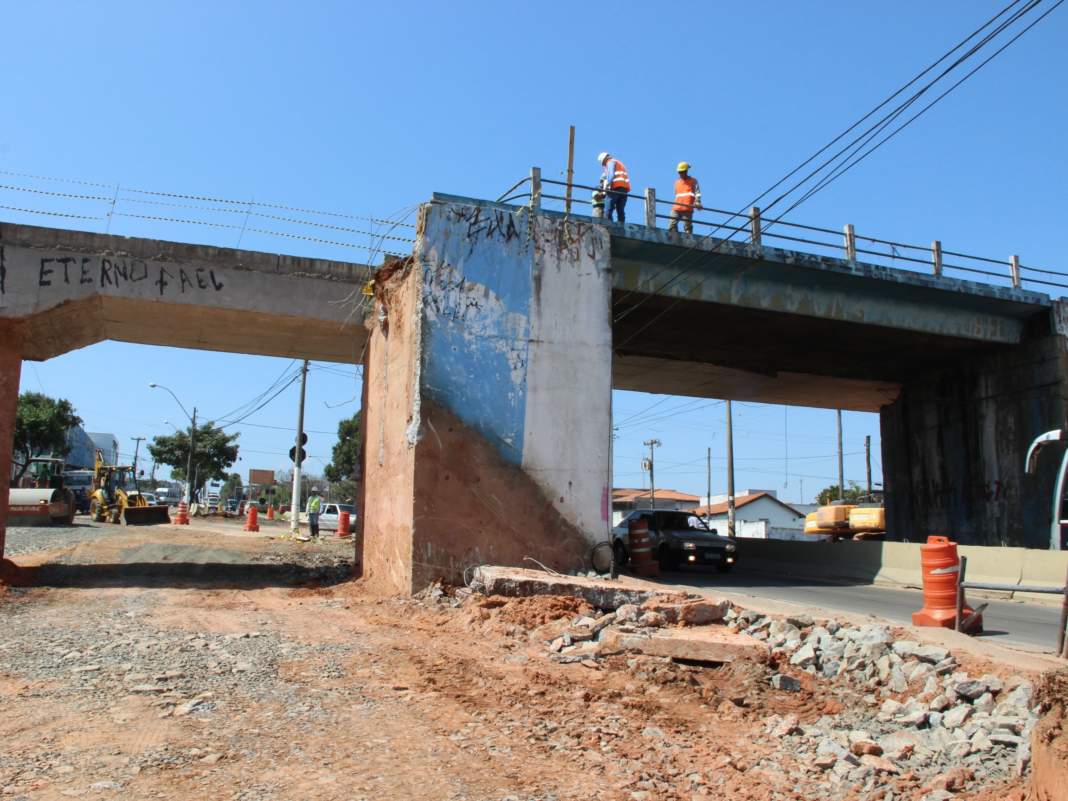 As pilastras antigas do viaduto serão demolidas e o desvio será feito das 7h às 17h para dar continuidade às obras de alargamento da estrutura do viaduto.