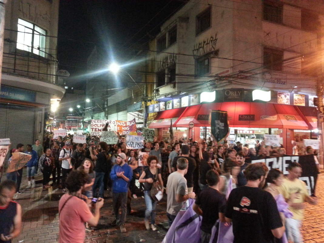 A mobilização ocorreu pelas redes sociais e a concentração se deu no Largo do Rosário. De lá, no início da noite, saíram em passeata pelas vias da região central por mais de uma hora. O que se observou nesse período foram vários grupos reunidos, mas com um único objetivo: protestar contra Michel Temer.