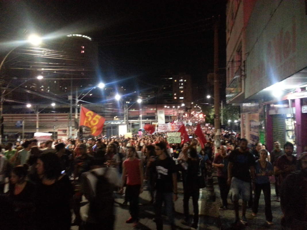 Nas ruas parte dos motoristas acenava e buzinava em apoio aos manifestantes. Bandeiras do PT e de movimentos sociais e sindical também foram vistos.