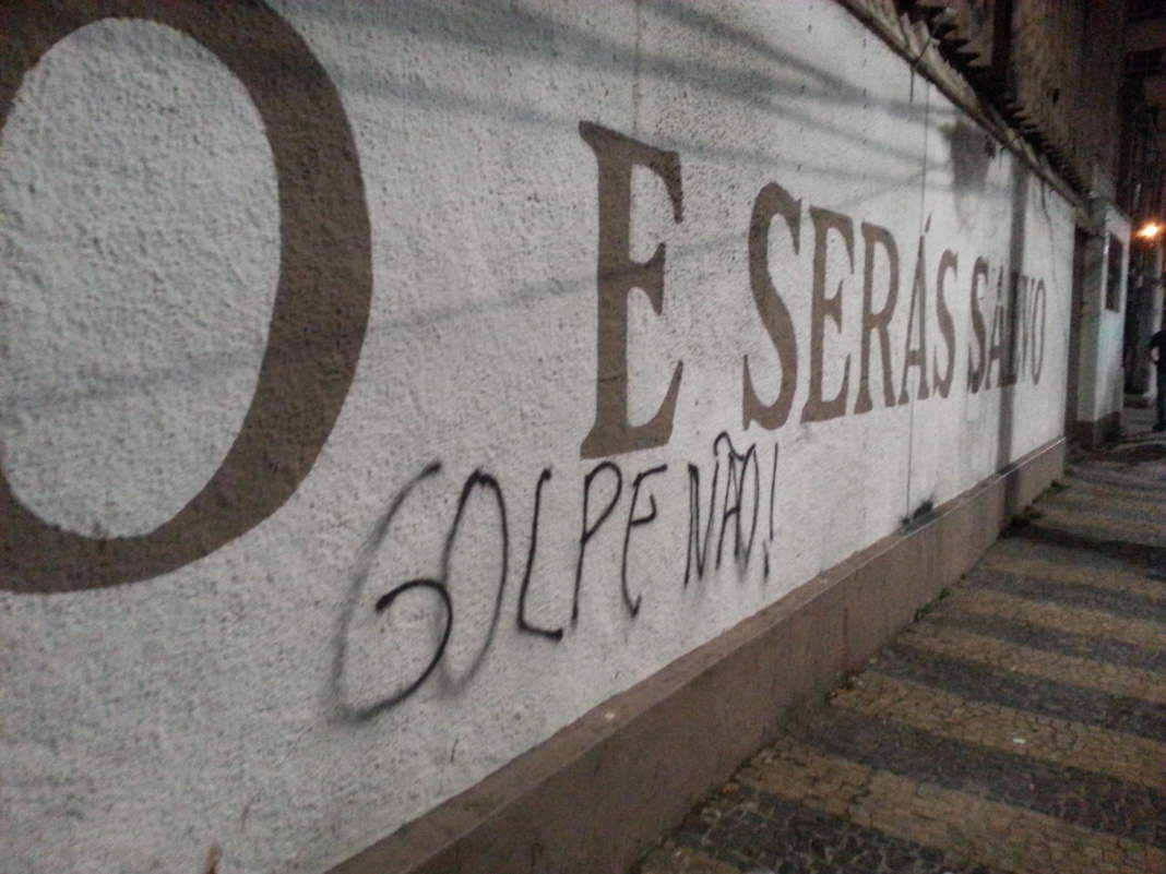 Ao longo de toda a caminhada, porém, a reportagem da CBN flagrou pessoas encapuzadas pichando muros na avenida Moraes Sales com os dizeres: “ Fora Temer” e “Não ao Golpe”. Já na avenida Francisco Glicério, repórter e cinegrafista da EPTV foram ameaçados, tendo o cinegrafista, inclusive, sendo agredido por um único manifestante encapuzado. Ele acabou tendo que entrar em um prédio por motivos de segurança.
