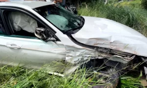 O motorista de uma BMW colidiu contra quatro veículos, uma árvore e quase caiu de...