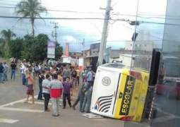 Um ônibus escolar que transportava 12 estudantes (entre 12 e 14 anos) da Escola Municipal...
