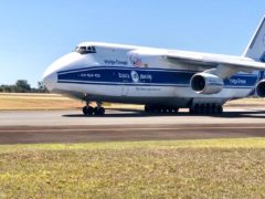 O Antonov 124-100, segundo maior avião cargueiro civil do mundo, pousou no Aeroporto Internacional de...