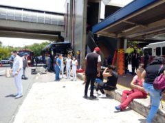 Um ônibus do transporte metropolitano se chocou com a Estação de Transferência do Tavares, na...