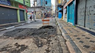 A Rua Barão de Jaguara, no Centro de Campinas, segue fechada por causa de um buraco...