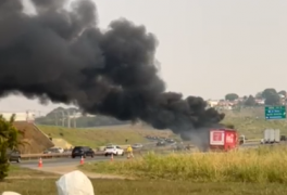 Um caminhão de bebidas pegou fogo na altura do km 114 da Rodovia Adhemar Pereira...