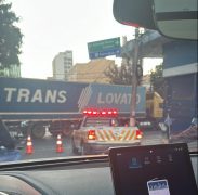 Um caminhão de grande porte entalou na Rua José de Alencar na manhã desta terça-feira....