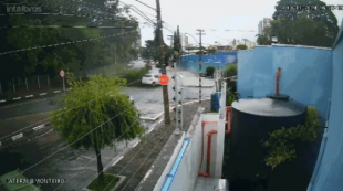 Imagens de câmeras de segurança flagraram o momento que o galho de uma árvore cai...