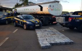 A Polícia Rodoviária Federal, em Cristalina, próximo ao Distrito Federal, apreendeu cerca de uma tonelada...