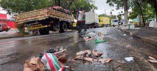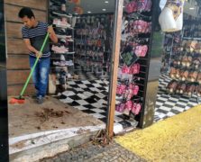 Uma enxurrada destruiu barracas de feira e espalhou quilos de frutas, verduras, legumes e peixes...