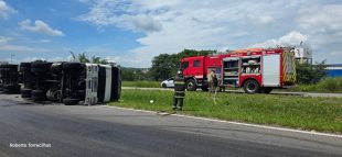 Carreta com engradados de cerveja tomba em Jaguariúna
