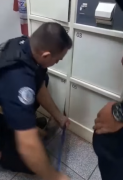 Uma criança ficou quase meia hora trancada dentro de um guarda-volumes de uma agência bancária...
