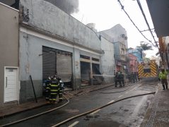 Quase 24 horas depois do incêndio que destruiu o depósito de uma loja de calçados...