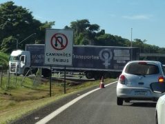 O motorista de um caminhão cometeu uma infração de trânsito e entalou na alça de...