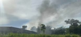 O barracão que pegou fogo na madrugada de segunda-feira e que causou vários quilômetros de...