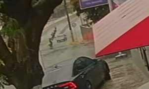 Pai e filho ficaram feridos após enroscar em fios derrubados por um caminhão na Avenida...
