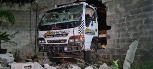 Um caminhão-guincho perdeu os freios e colidiu com o muro de um barracão, na rua...