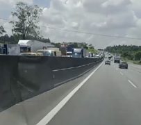 Uma colisão traseira envolvendo um caminhão e uma carreta deixou um motorista gravemente ferido, no...