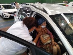 A aplicação da primeira dose da vacina contra a Covid-19 em idosos com 68 anos...