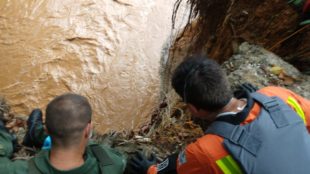 Um menino de 5 anos e o pai dele foram resgatados após caírem em um...