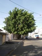 Uma árvore de grande porte, plantada há vários anos na calçada de uma residencia, localizada...