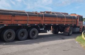 Um caminhão a serviço da Companhia de Saneamento Básico do Estado de SP (Sabesp) foi...