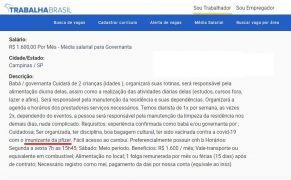 A publicação de uma vaga de emprego de governanta em Campinas em um site de...